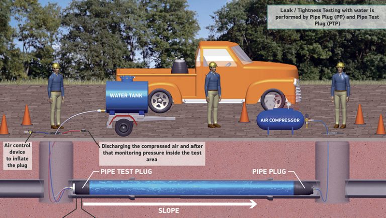 - Inserta un tapón de tubería con un bypass en un extremo de la tubería y otro tapón de tubería normal en el otro extremo.